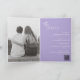 Modern lavender / purple folded wedding invitation featuring a simple and minimal design with the bride's name in an elegant script and the groom's name in a contemporary sans serif font. Below in the lower right corner are your event details in a minimalist layout. The inside has your favorite photo and your additional details, including an optional QR code (if you prefer, the QR code may be removed in the design editing tool). The back has two more optional sections for more information.