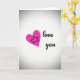 This card shows a bright fuchsia heart sitting slightly left on a white background that fades softly to light gray around the edges. Inside the heart, there’s a simple black outline of a five-point star, like a little sign of someone special. The heart color is intense and cheerful, and it feels like an honest “I really like you” kind of moment. On the right side, the words “love you” appear in thin, flowing black lettering that looks like neat hand lettering. The open space around the heart and message makes everything feel calm and focused, so your note doesn’t get lost. It’s a sweet choice for a partner or a close friend because it says a lot without trying too hard 🥰. Give it when you want to be clear and caring, and enjoy sharing Valentine’s Day feelings with someone you love ❤️.