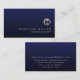 Minimal Luxury Navy Blue Silver Monogram Business Card