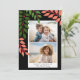 Minimal modern 2 photo - botanical coral black holiday card
