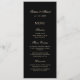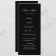 Islamic Muslim Minimal Wedding Table Menu to put on the dinner table for the guests attending this special event. This card has a simple, formal black color background with classic gold script calligraphy font written. You can personalize the names of the bride and groom, the date of the marriage or other event and edit the halal food information that is shown. Modern. Golden. Choose the paper type to make it unique for you. Editable template. Her Line For Design Studio on Zazzle.
