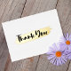 Minimal Modern Black White Gold Script Thank You Foil Holiday Card