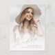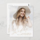 Minimalist graduation announcement and invitation feature gold modern chic script and photos in front and back, simple and elegant. Custom it with your own photos and grad party information.