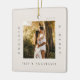 Minimal Modern Engaged & Merry 2 Photo Engagement Ceramic Ornament