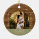 Minimal Modern Engaged & Merry 2 Photo Engagement Ceramic Ornament
