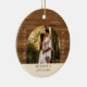 Celebrate your engagement with this elegant mid-century modern ornament, featuring a stylish faux brown wood and white two-tone design. A bold cream stripe along the bottom highlights the couple’s name, while a minimalist square frame displays your favorite engagement photo. With one photo on each side, this ornament is a beautiful double-sided keepsake. The phrase “Engaged & Merry”, the year, and your names are displayed in a clean, modern font around the image – perfect for adding a personal touch to your holiday decor or gifting to a newly engaged couple. Design and Layout by ©Moodthology Papery