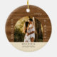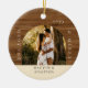 Minimal Modern Engaged & Merry 2 Photo Engagement Ceramic Ornament