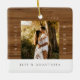Minimal Modern Engaged & Merry 2 Photo Engagement Ceramic Ornament
