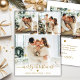 Minimal Modern Gold Script 4 Photo Merry Christmas Holiday Card