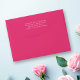 This Wedding invitation envelope features a modern font in white on a hot pink background. This piece is ready for you to customize with your name and address. Part of an ever-growing collection, please browse the Elegant Minimal Pink Wedding Suite for matching items.