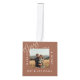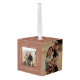 Minimal and modern simple photo keepsake photo cube ornament to commemorate your first Christmas married. The design features a simple minimal design with a square photo design to display your special wedding photos. "Married & Merry", year and couple's name displayed in a simple modern design around the photo.