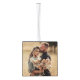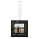 Minimal and modern simple photo keepsake photo cube ornament to commemorate your first Christmas married. The design features a simple minimal design with a square photo design to display your special wedding photos. "Married & Merry", year and couple's name displayed in a simple modern design around the photo.