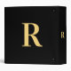 Minimal Modern Monogram Black Gold 3 Ring Binder