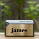 Minimal modern bluetooth speaker featuring your monogram name in trendy bold typography on a gold faux metallic background. You can adjust the size of the text in the design tool for shorter and longer names.