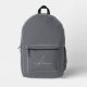 Minimal modern dark grey backpack. Personalize with your monogram initials and name in a mix of a chic dark grey script and simple white typography.