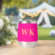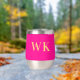 This is a minimal, modern, two initials, monogram design. It is in trending hot pink and gold. The monogram letters are in simple and stylish modern typography. Perfect as a personalized gift or ideal as a new drinkware accessory for yourself. To personalize, simply add your initials by typing them into the personalize this text box. To customize further, check the design editing tool, where you can change the color or font. If you need help with personalisation, matching products, or for a custom design, contact me via zazzle chat or email: ursuladawnmoon@gmail.com