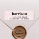 Light pink return address label with your name in large minimal modern lettering.