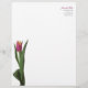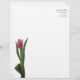 Modern and minimal pink and yellow tulip letterhead design ideal for personal use. A beautiful pink & yellow tulip sits in the bottom left hand corner as if it grows up the side of the page. Personalize with your name and contact details in the top right corner.