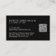 Minimal modern and elegant professional black business card with your name, title and contact information (e.g., email, telephone numbers, company name and mailing address) in clean and simple white typography. Input a URL address to create a QR code linked to your website, social media profiles, or any other platform showcasing your work, that your customers and clients can easily scan to explore your expertise. On the back, add additional text or leave blank.
