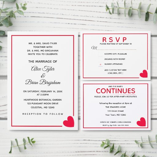 Minimal Modern Red Heart Valentine Wedding Invitation