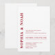 Yes, you can print on the back of your invitation for free! Most designs already have a corresponding design on the back that can be personalized using the Design Tool and going to Layers. This is a great way to communicate more information or further personalize your Minimal Modern Red White Elegant Wedding Invitation. The option is really up to you.