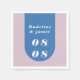 Our minimal, bold retro style wedding napkin is perfect for the trendy couple who loves standing out and making a bold statement. Our design features a bold bright blue and light purple color combo. A simple abstract arch shape creates a bold look with the wedding date displayed boldly in white large font along with the couple's name. Designed by Moodthology Papery