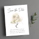 This minimal modern save the date postcard is designed especially for minimalists and nature lovers featuring a watercolor of a tree with impressionistic green, pink and coral foliage and a curved grey trunk. "Save the Date" is written in a stylish contemporary dark grey script, your names are in a coordinating sage green and you can easily add the wedding date and location. On the reverse of the card you can add whether a formal invitation will follow and your wedding website if desired in coordinating grey typography against a light sage green background.