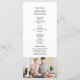 Simple, minimalist, black and white, modern script wedding program, with photo of the couple at the back.