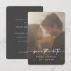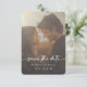 Announce your big day in style with this modern minimalist save the date card—perfect for couples who love elegant simplicity. Featuring your favorite engagement photo as the focal point, the design is enhanced by a subtle transparent sunray overlay, adding a romantic and ethereal touch. The reverse side showcases a soft watercolor gray background, providing a serene and timeless aesthetic. Created by Simply Farmhouse Press.