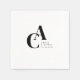 Minimal, monogram, handwriting font, white, wedding napkin. Personalized with your name and date.