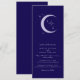 This minimalist wedding invitation features a deep navy blue background with a soft moon and star design. The clean celestial artwork creates a calm and elegant look. The layout is balanced and easy to read, making it suitable for both modern and classic weddings.