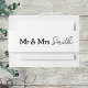 These minimal Mr & Mrs invitation belly bands feature bold black lettering and elegant wedding script. To edit the text click on the personalize button. If your surname is a different length please see other belly bands in this collection. If you need further help message me and I'll upload your surname.