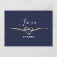 Elegant, minimal, simple navy blue wedding thank you card with gold rope heart and custom text at the back.