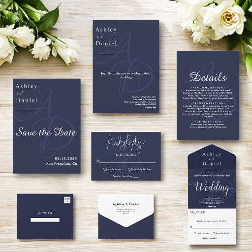 Chic Navy Blue White Monogram Wedding CollectionDesigned by Mohamed Sherif