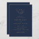 Minimal Navy Gold Botanical Monogram Wedding Invitation