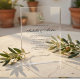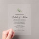 Featuring a delicate olive branch illustration and refined typography, this invitation blends Mediterranean charm with a clean, contemporary aesthetic. The transparent acrylic format adds a luxurious touch, making it perfect for upscale weddings and destination celebrations.