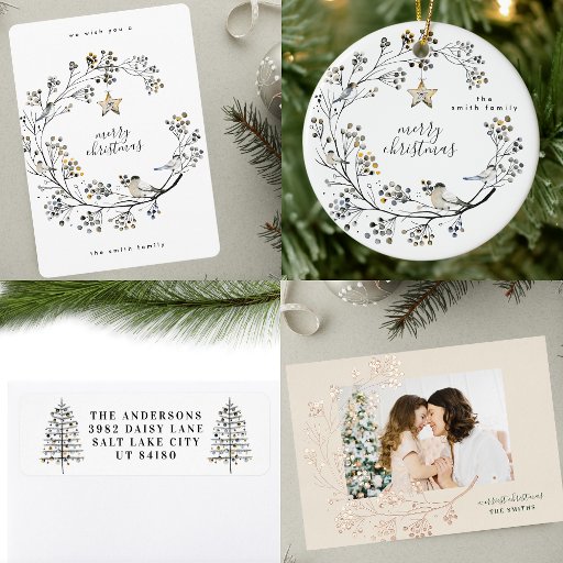 Minimal Organic Merry Christmas Star Wreath Photo Holiday Card