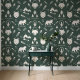Transform your living space into a modern wilderness retreat with our minimal green and cream-white outdoor wilderness mountain forest animal peel-and-stick wallpaper. This stunning wallpaper features a sleek and minimalistic design, capturing the essence of the great outdoors with symbols representing mountains, foxes, bears, wolves, trees, and more. Perfect for a wide range of rooms, from kids' rooms to hallways and offices, this versatile wallpaper brings a touch of nature modern elegance, and boho style to any space. Designed by Moodthology Papery