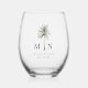 Minimal Palm Trees Monogram Wedding Stemless Wine Glass