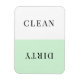 Minimal pastel green dishwasher clean or dirty magnet for indicating dishes in home kitchen.