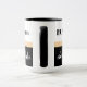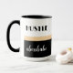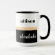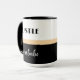 Hustle like a boss babe Mug. A modern, chic design with bold typography on a black and white background divided by a champagne gold-colored border. Personalize the mug with your name on the back.
