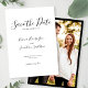This Wedding Save The Date Invitation card features an elegant, modern and minimal typographical design with a black and white color scheme. Ready for you to customize with the details of your special day and add your own photo to the back of the card, please browse the Black White Minimal Elegant Wedding Suite for matching stationery items.