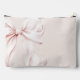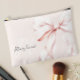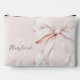 This is a stylish and elegant personalized makeup pouch featuring a soft pink background adorned with a large, delicate pink ribbon bow. The design exudes a feminine and sophisticated charm, perfect for carrying your essential cosmetics and beauty items. The pouch can be customized with a name, making it a unique and thoughtful gift. Background image by Freepik