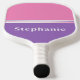 This pickleball paddle is simple, modern, minimal but bold and colorful with its pink and purple stripes and your name.