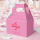 Retro wedding favor box featuring modern retro typography in pink and red color.