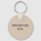 Minimal Prioritize You Quote Beige Keychain