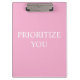 Minimal Prioritize You Quote Dusty Rose Pink Clipboard