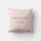 Minimal Prioritize You Quote pastel pink Throw Pillow