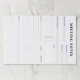 A minimal black and white meeting notes planner for your home office or professional workplace. Features space for a project name, dates, topics to discuss, a to do list with responsible people and deadlines and space for your more notes.