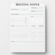 A minimal black and white meeting notes planner for your home office or professional workplace. Features space for a project name, dates, topics to discuss, a to do list with responsible people and deadlines and space for your more notes.